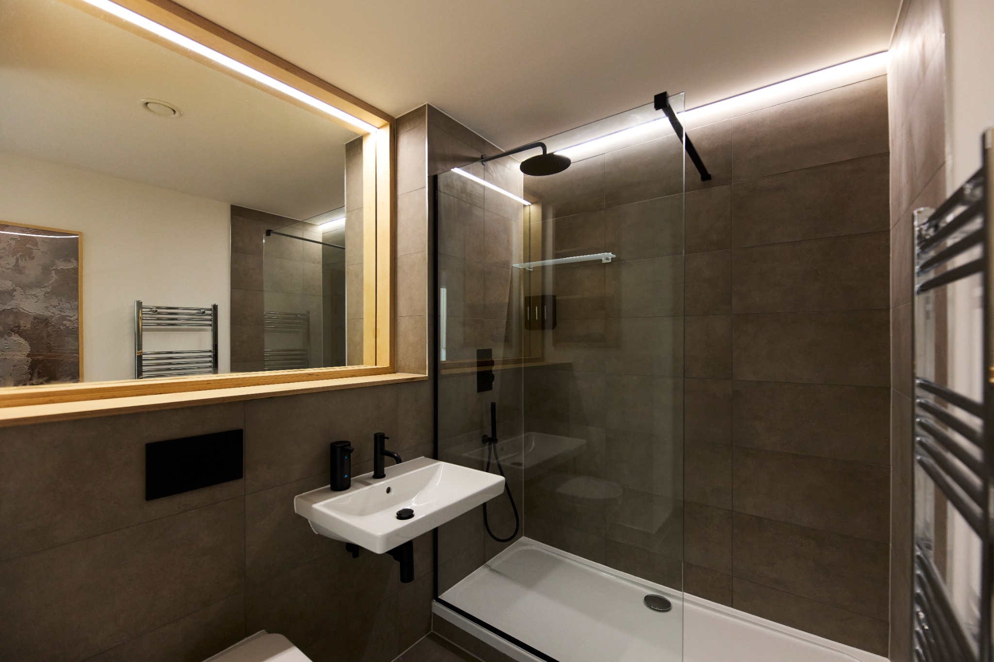 Relax in the living area or unwind in your private room — each one features a Smart TV for your entertainment. The luxury bathrooms are designed with premium finishes, offering a spa‑like experience every time.